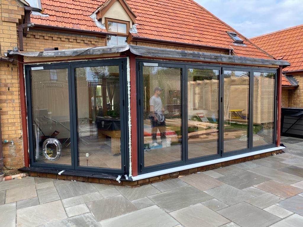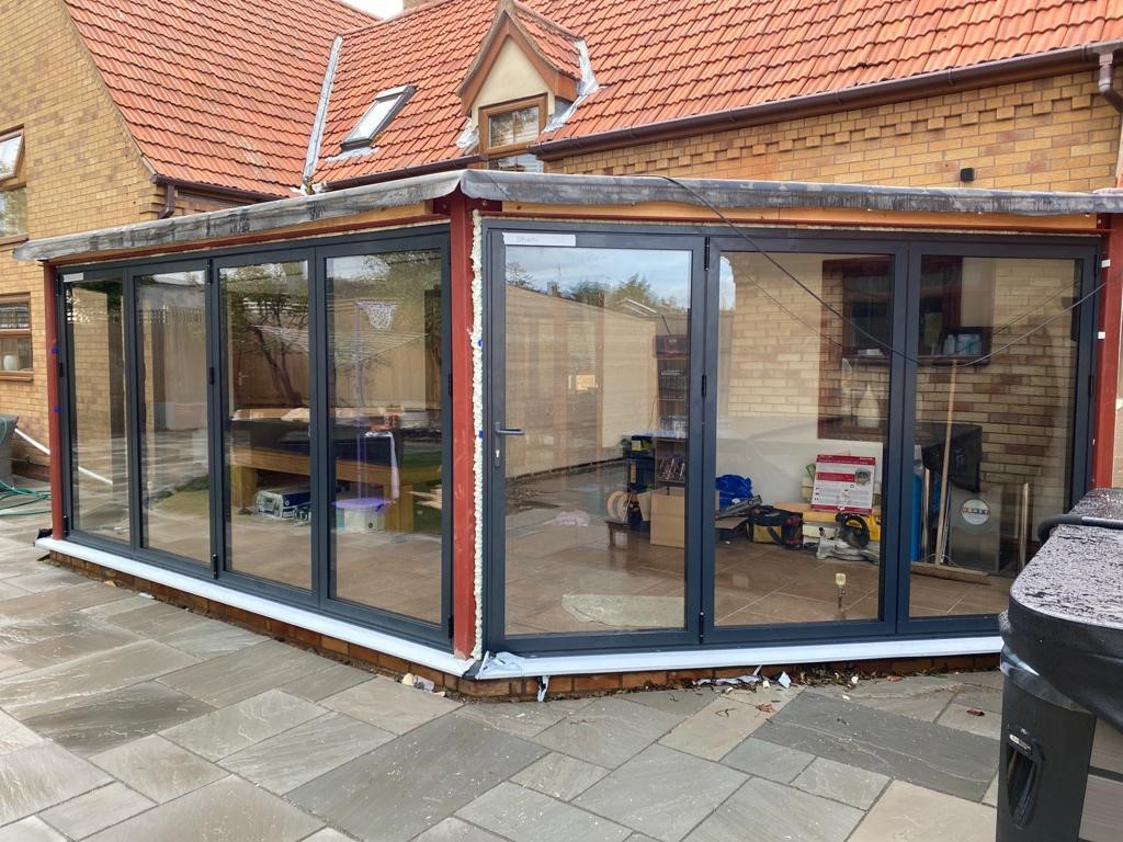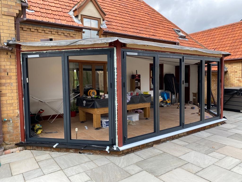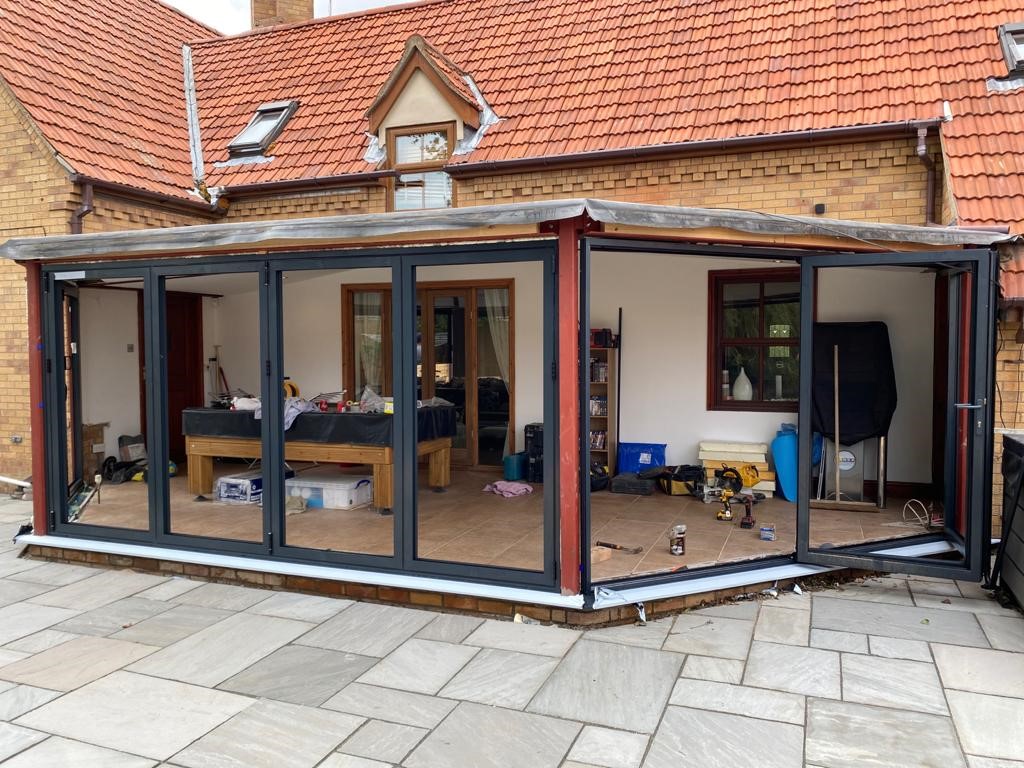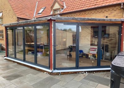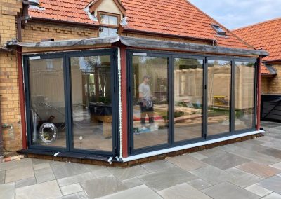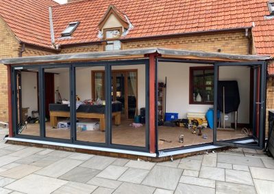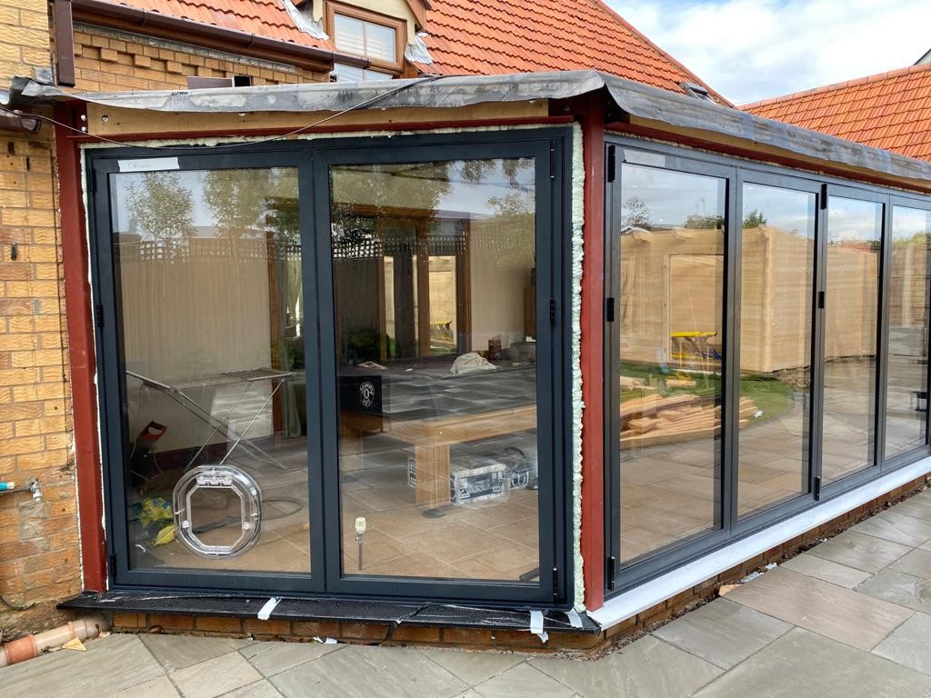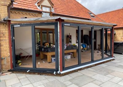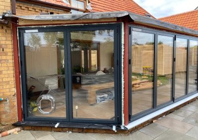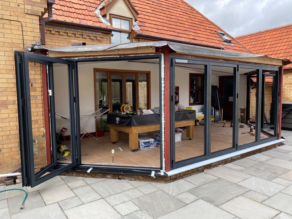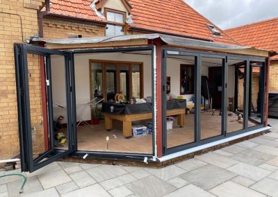 Removal of existing windows & Doors, Installation of new steel framework, installation of new Aluminium Bifolds